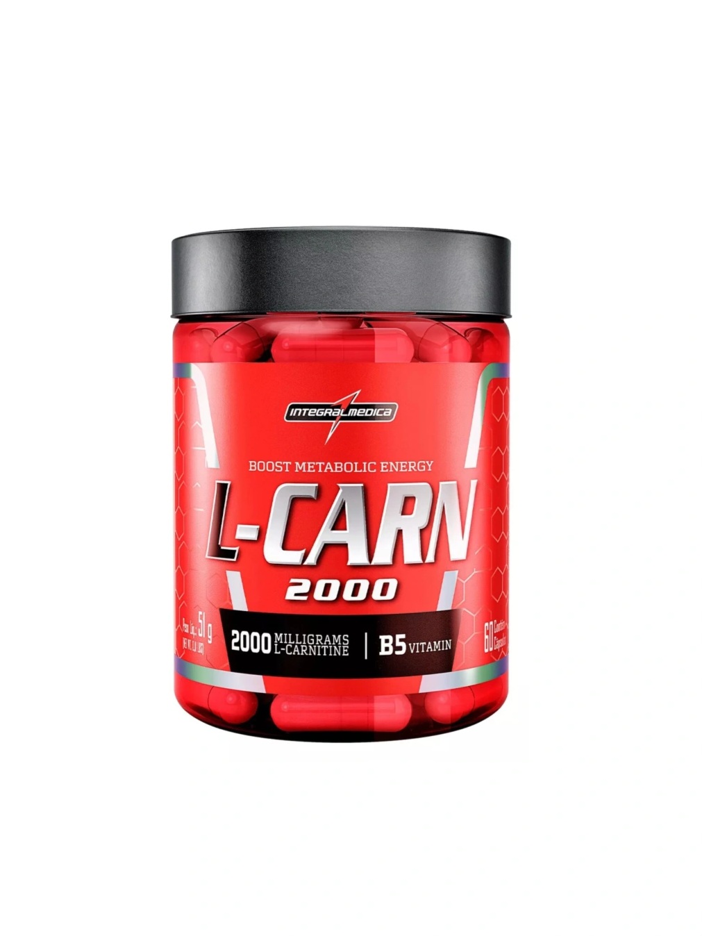 L-Carn Integralmédica também conta com adição de vitamina B5 na sua formulação e é isento de gorduras e carboidratos.